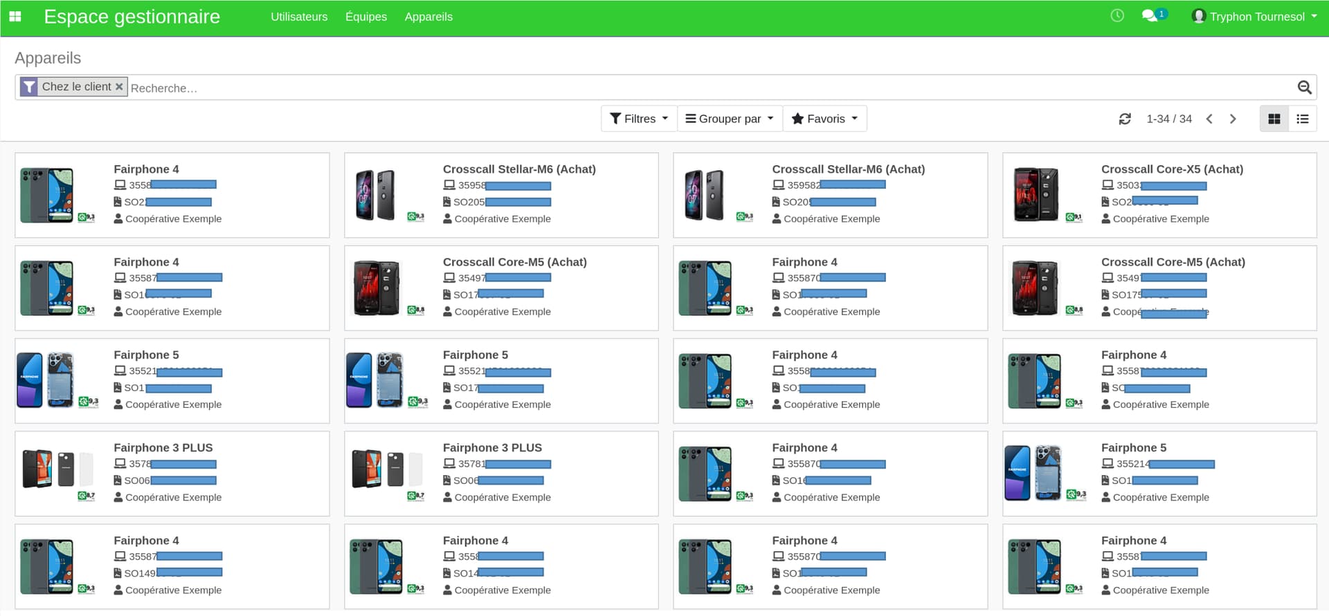 Vous trouverez l’ensemble des appareils en location dans votre structure en cliquant sur la section « Appareils » disponible dans votre espace gestionnaire.